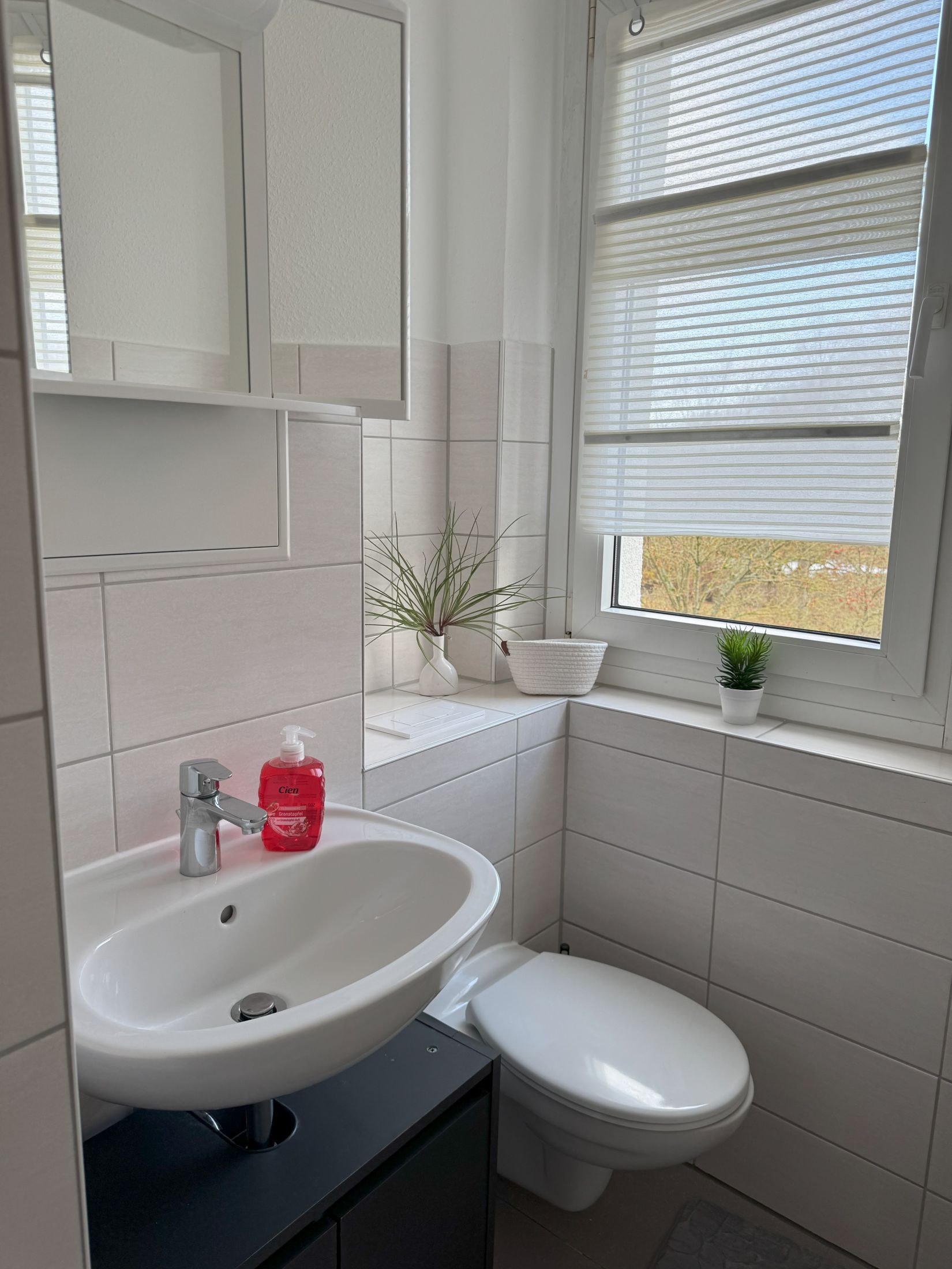 Die separate Küche ist vollständig ausgestattet. Das modern sanierte Badezimmer mit Dusche und Waschmaschine entspricht den heutigen Mieterwartungen und minimiert kurz- bis mittelfristigen Investitionsbedarf.